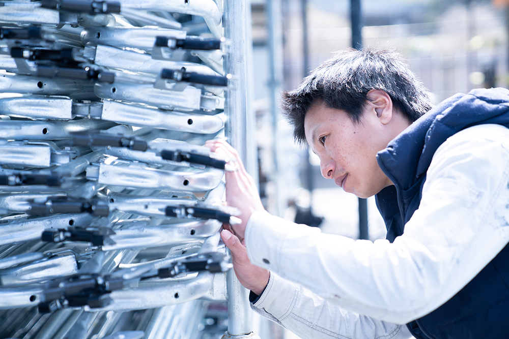 足場を使われる職人さんの作業内容に合わせて、一人ひとりが気の利く足場作りに真摯に向き合っています。